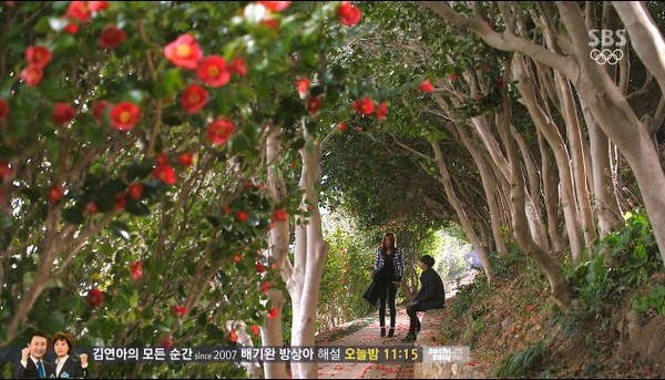 ▼都敏俊與千頌伊降落時的地點,就在長蛇島內冬柏花正盛開的小徑間。(圖/取自長蛇島海上公園粉絲專頁)